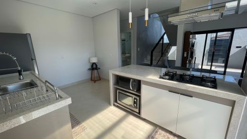 Ela acomoda até 6 pessoas numa boa, então é perfeita pra família ou grupo de amigos. Tem garagem pra 2 carros, sala integrada com a cozinha (todo mundo junto, do jeitinho que viagem pede), TV de 50” pra relaxar depois dos passeios e Wi-Fi pra não ficar desconectado.