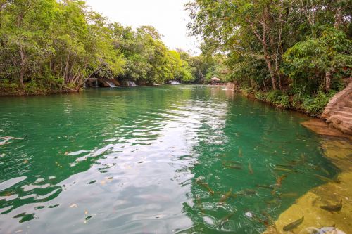 A área de lazer fica às margens do Rio Formoso, onde você tem a oportunidade de explorá-lo, em um refrescante banho com a companhia de cardumes de peixes.