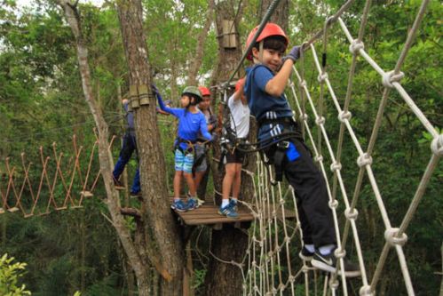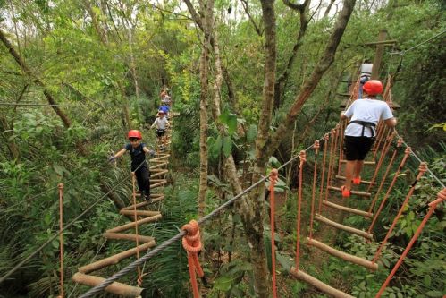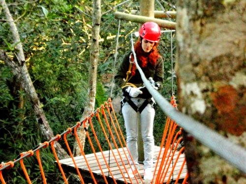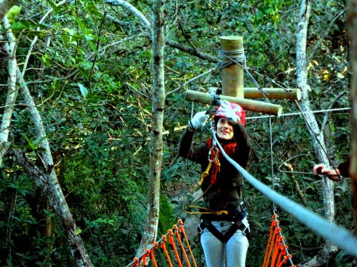 Em um percurso de 300 metros nas trilhas suspensas que variam de 4 a 15 metros de altura do solo, passando pelas copas de árvores dentro da mata preservada. Ao todo são 18 estações diferentes com dificuldades gradativas e duas tirolesas, sendo a última delas aquática que cai direto no rio Formoso.