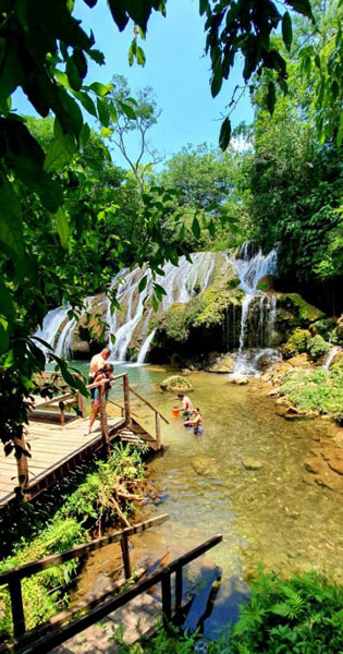 A partir deste ponto o visitante percorrerá uma trilha de 550 metros margeando o Rio, para ter acesso a última Cachoeira, um espetáculo à parte, com suas águas rasas e cristalinas, possibilitando o acesso de todos, sem restrições.