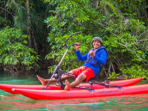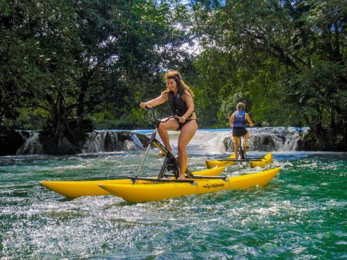 A ideia de andar de bicicleta sobre os rios ou mares era absurda até a chegada do Bike Boat, que por meio de uma espécie de “bicicleta inflável” é possível que você simplesmente pedale e percorra as águas calmas e cristalinas dos rios de Bonito MS.
