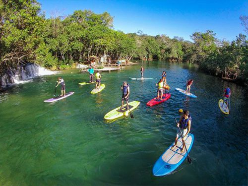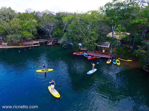 O passeio Eco Park Combo Bote é um conjunto de 3 atividades que une o bote com a prática de Stand Up Paddle, com a Boia Cross nas águas do Rio Formoso e dá direito ao Day Use no balneário.