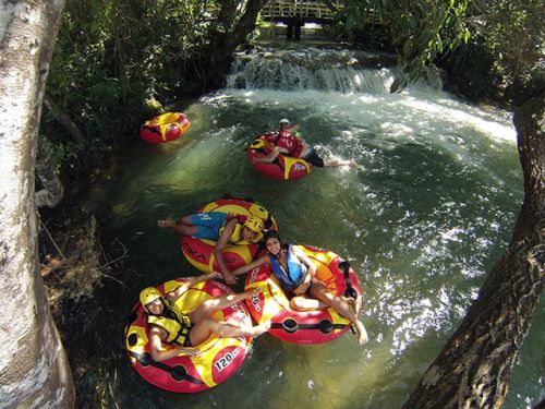 Então os participantes iniciam a descida, em boias infláveis individuais, de 300 metros passando por quedas d’água e corredeiras durante o percurso. Mas não se preocupe, a atividade é acompanhada por um guia especializado e o local fornece todos os equipamentos de segurança necessários, que o participante deve manter durante todo o trajeto na água.