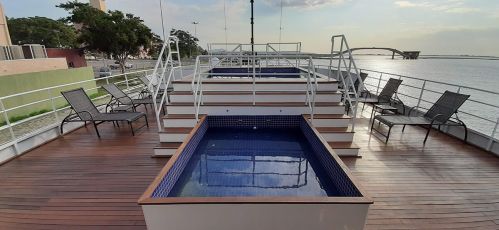 Diante disso, a bordo dele você encontrará um elevador, 2 cabines que tiveram todos os seus detalhes minuciosamente pensados, visando a hospedagem segura e aconchegantes para deficientes físicos ou que tenham mobilidade reduzida, além da importante central (onde é realizado o tratamento de água e esgoto).