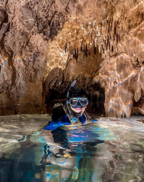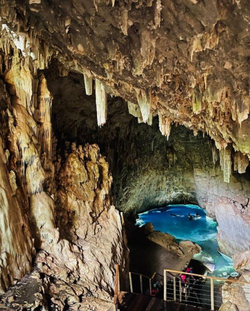 E assim como em diversos outros atrativos, a água no interior dessa gruta também é extremamente cristalina, favorecendo ainda mais a prática de mergulho no local.